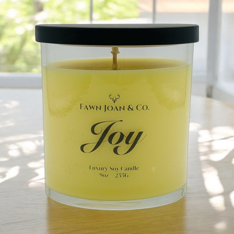 Joy is a bright citrus fragrance with top notes of orange and lemon peel, green leaves and pomegranate in the middle and a base of cedar and vetiver. It is sunshine in the morning!